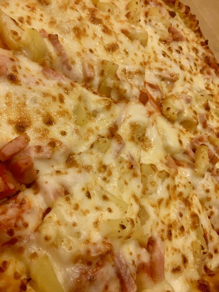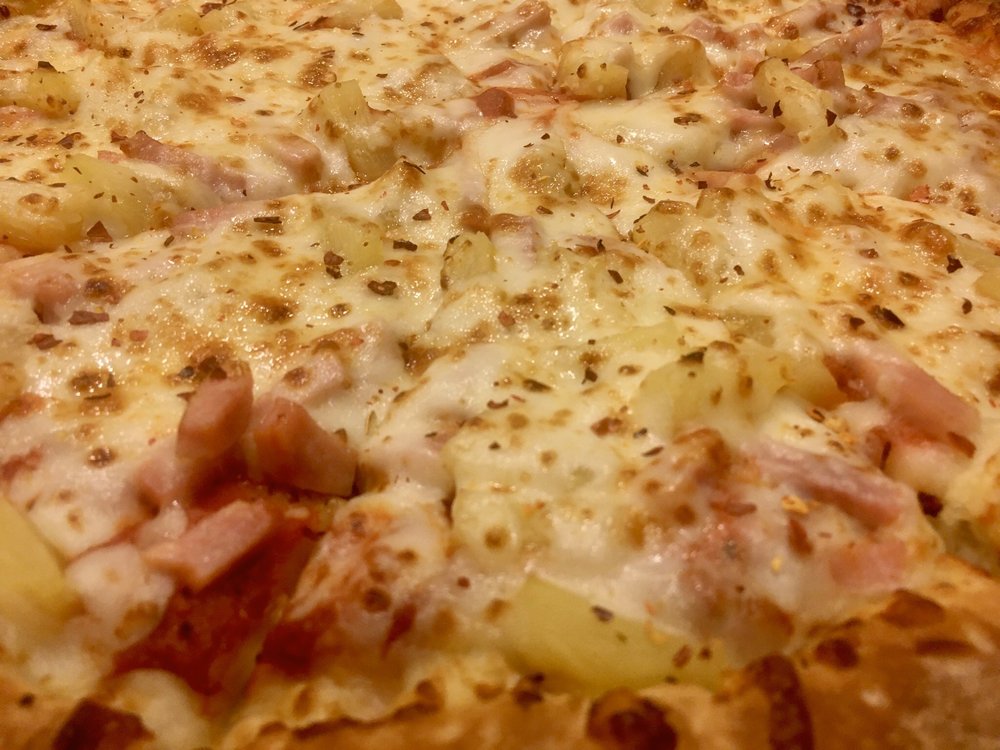 Get a taste of the tropics. This super delicious pizza is loaded with sweet, juicy pineapple tidbits, julienne-cut Canadian bacon, hickory-smoked bacon, a three-cheese blend, and real cheese made from mozzarella on our signature sauce and original fresh dough.